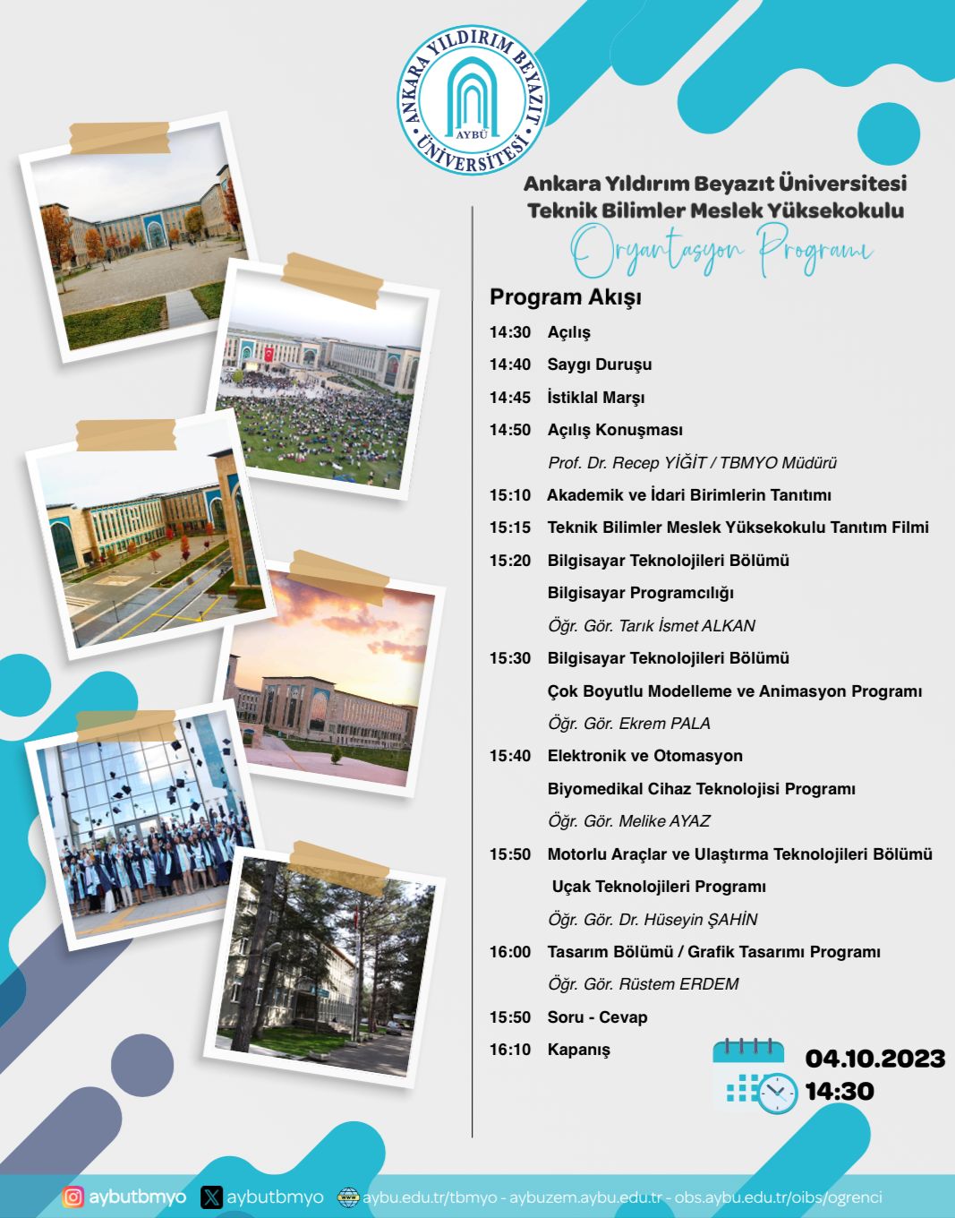 Teknik Bilimler Meslek Yüksekokulu "Oryantasyon Programı" 04.10.2023 Çarşamba saat:14:30'da Çubuk yerleşkesi