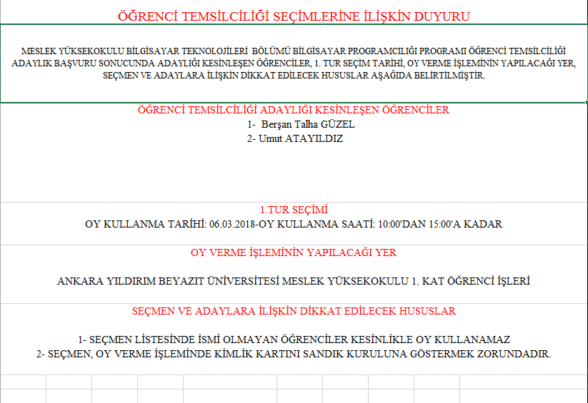 ÖNLİSANS SEÇMEN LİSTELERİ