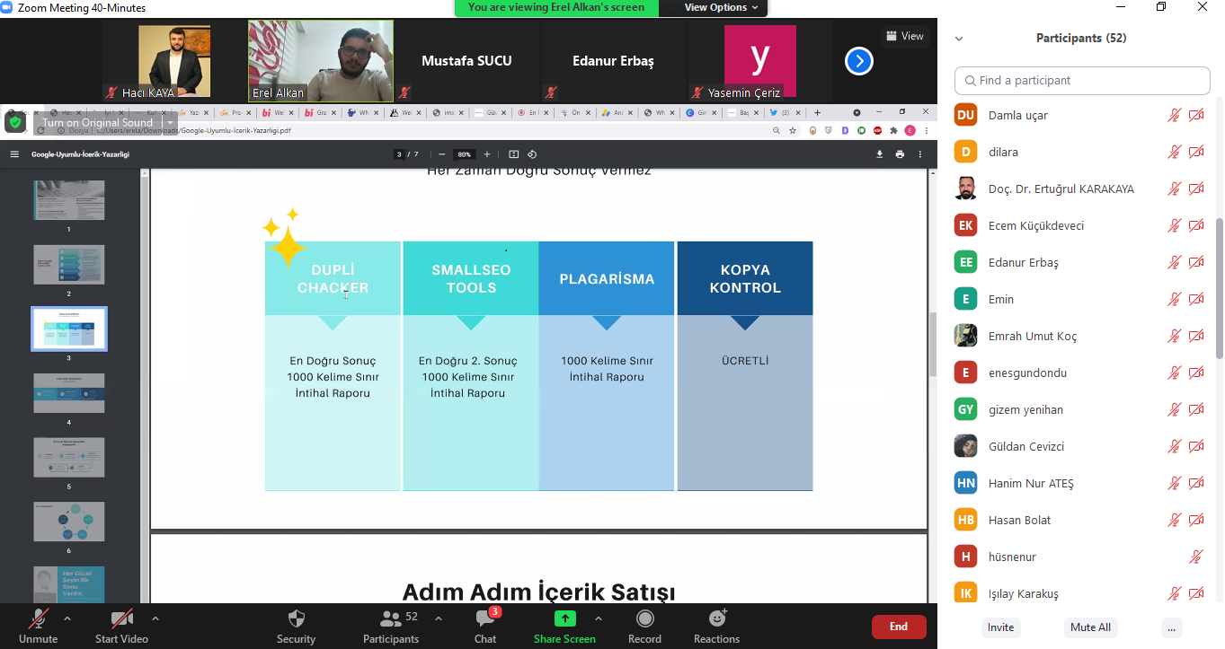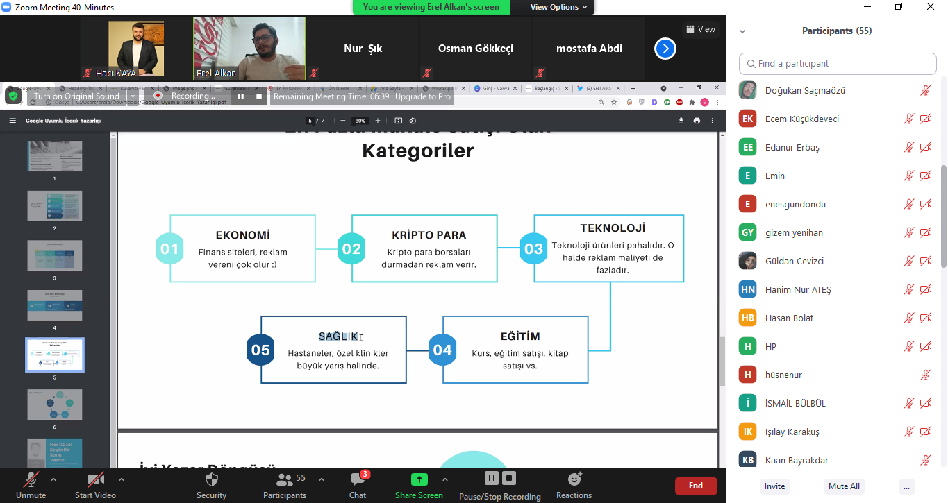 Öğr. Gör. Hacı Kaya tarafından verilen Bilgisayar Programcılığı İçerik Yönetim Sistemleri, Grafik Tasarımı Programı Web Tasarımı, Halkla İlişkiler ve Tanıtım Programı Dijital İçerik Yönetimi derslerinde eğitim gören öğrenciler için gerçekleştirilen söyleşide Alkan, dijital dünyada metin yazarlığı, dijital reklamcılık ve dijital iş platformaları hakkında katılımcılara bilgi verdi.