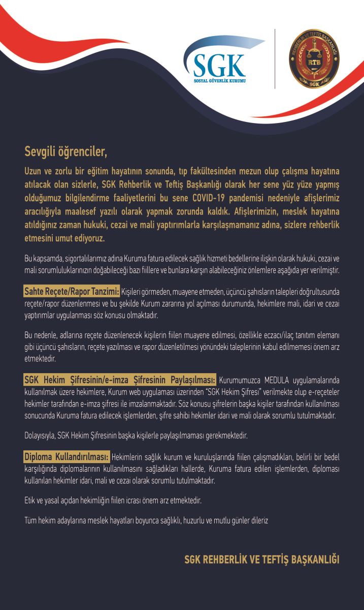 Sosyal Güvenlik Kurumu Başkanlığı Rehberlik ve Teftiş Başkanlığının İntörn Öğrencilerimize duyurusu. (15-12-2020)
