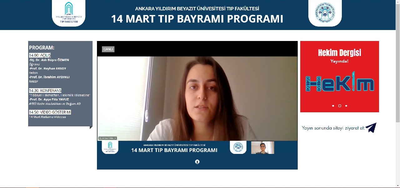 Fakültemiz Öğrenci Temsilciliği Organizasyonunda ve Dekanlığımızın destekleri ile online 14 Mart Tıp Bayramı programı düzenlendi. (14-03-2021)