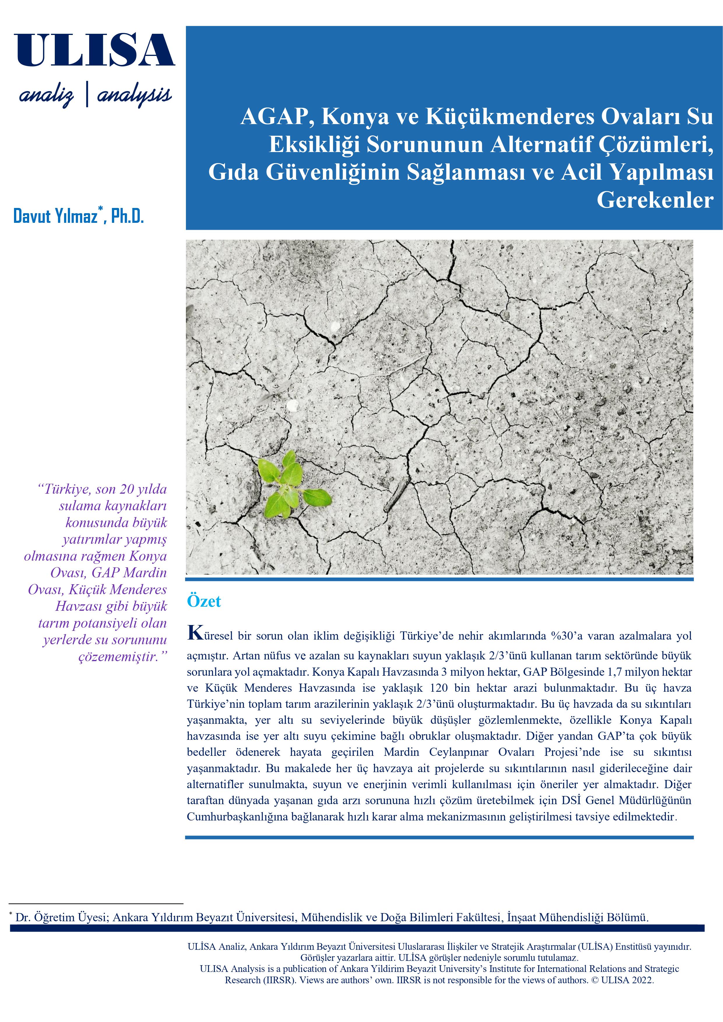 ULİSA ANALİZ: AGAP, Konya ve Küçükmenderes Ovaları Su Eksikliği Sorununun Alternatif Çözümleri, Gıda Güvenliğinin Sağlanması ve Acil Yapılması Gerekenler