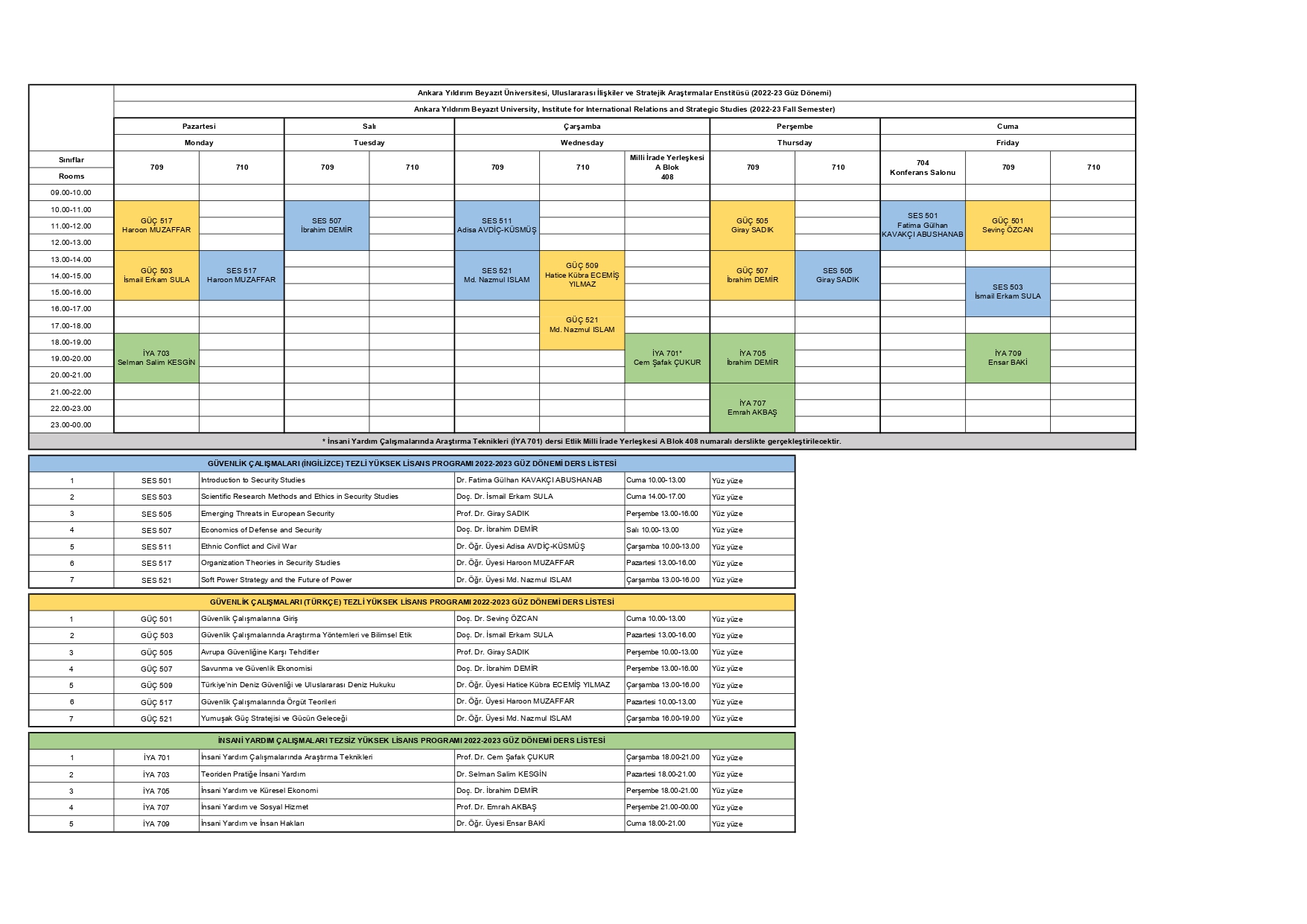 2022-2023 GÜZ DÖNEMİ HAFTALIK DERS PROGRAMI (GÜNCELLENMİŞTİR)