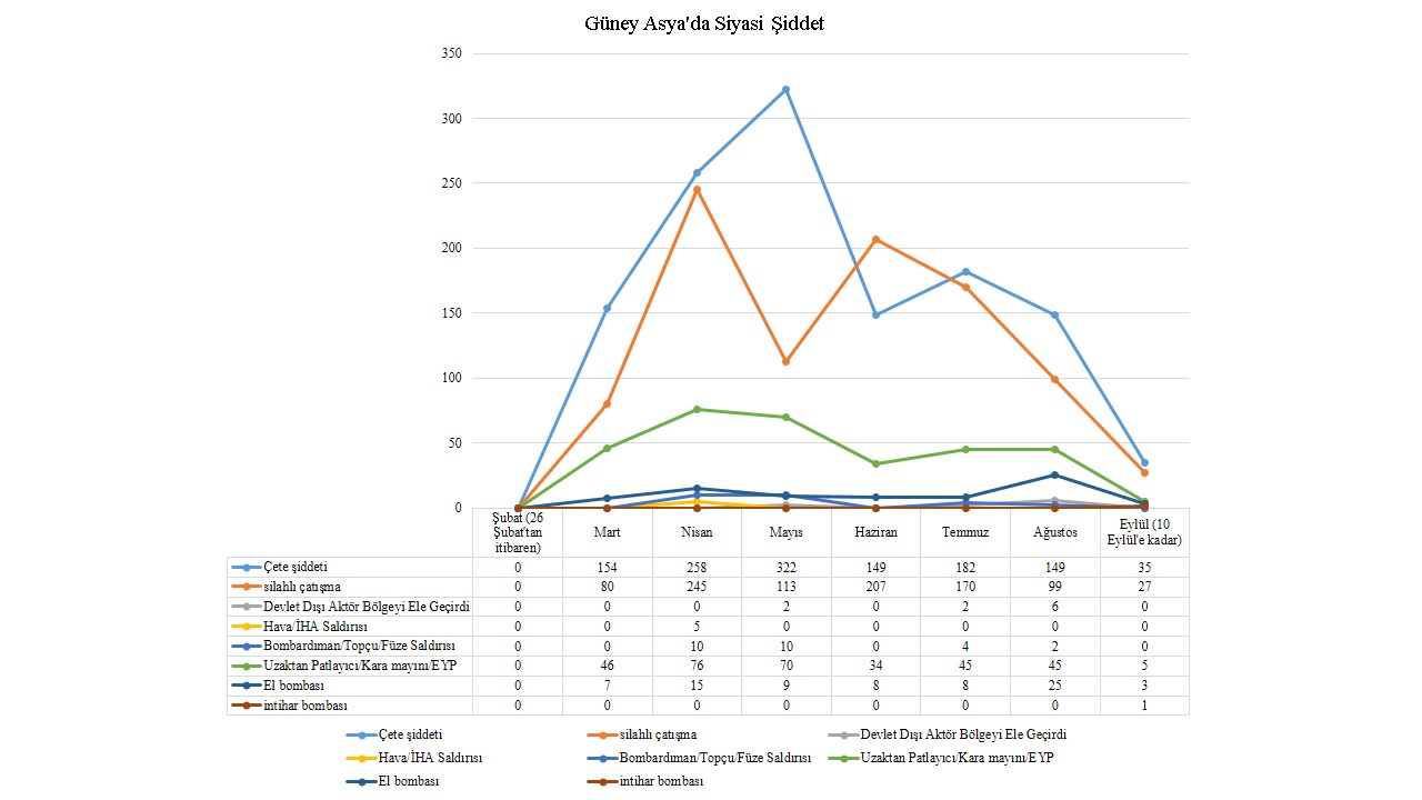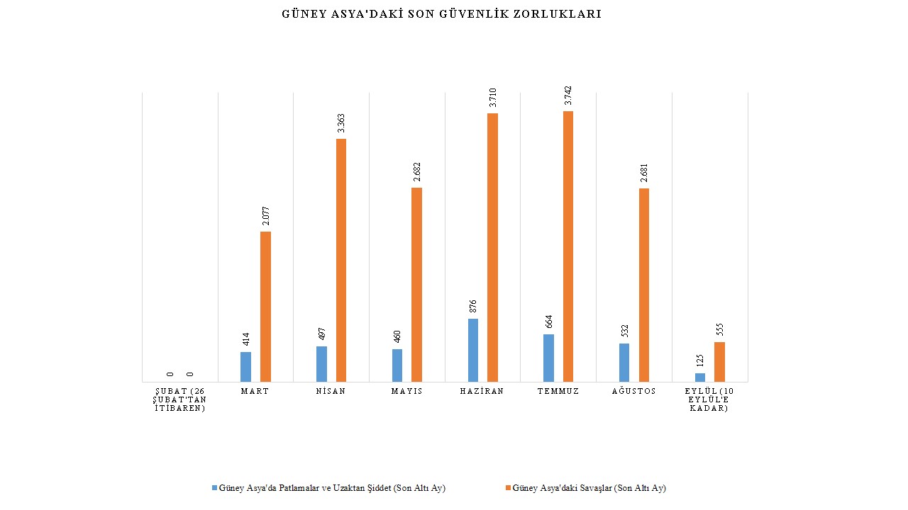 Güney Asya'da yaşanan son olaylar ışığında Pakistan, Afganistan, Sri Lanka, Hindistan ve Bangladeş ülkelerinin hepsinin korkunç bir krizin pençesinde olduğu açıktır. Pakistan hükümet güçleri, Hayber Pakhtunkhwa eyaletinde Tehreek-i-Taliban Pakistan (TTP) ve muhtemelen diğer silahlı gruplarla savaştı. Şiddet devam etmesine rağmen, Pakistan'daki Taliban ve Pakistan devlet askerleri ateşkes anlaşmasının şartlarına bağlı kaldılar (Şafak, 2022, Islam, 2022). Bu devam ederken, Belucistan'da güvenlik güçlerine ve sivillere yönelik saldırılardan Beluç ayrılıkçıları sorumluyken, Pencap'ta yerel siyasi liderler kimliği belirsiz saldırganlar tarafından suikasta uğradı. Hindistan'ın bakış açısından, Naksal-Maocu militanlar sürekli olarak sivillere saldırdı ve Kızıl Koridor'da devlet yetkilileriyle şiddetli çatışmalara katıldı. Buna ek olarak, Hindistan'ın Chhattisgarh semtinde isyancılar polis muhbiri olduklarını düşündükleri insanları öldürdüler ve polis askerlerine yönelik malzeme dolu bir yolcu otobüsünü yağmaladılar. Sri Lanka'daki kilit protesto organizatörlerini tutuklamak hükümet karşıtı gösteri faaliyetlerini yavaşlatırken, bu diğer ülkelerde olmadı. Birleşmiş Milletler (BM), ülke hala gıda ve yakıt kıtlığı nedeniyle mücadele ettiği için daha fazla hesap verebilirlik ve kapsamlı kurumsal reformlar için bir talep yayınladı (OHCHR, 2022). Hemen hemen aynı nedenle, Bangladeş'te Bangladeş Milliyetçi Partisi'nin (BNP) düzenlediği gösteriler düzenlendi. Bangladeş'teki muhalefet partisi, ülkenin artan maliyetleri ve enflasyonundan iktidardaki Bangladeş Awami Ligi'ni (AL) sorumlu tutmaktadır (Dhaka Tribune, 2022)[i].