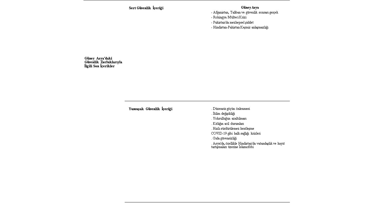 Tablo 01: Asya'daki Güvenlik Zorluklarıyla İlgili Son İçerikler (Yazar Tarafından Hazırlanmıştır ve Derlenmiştir)