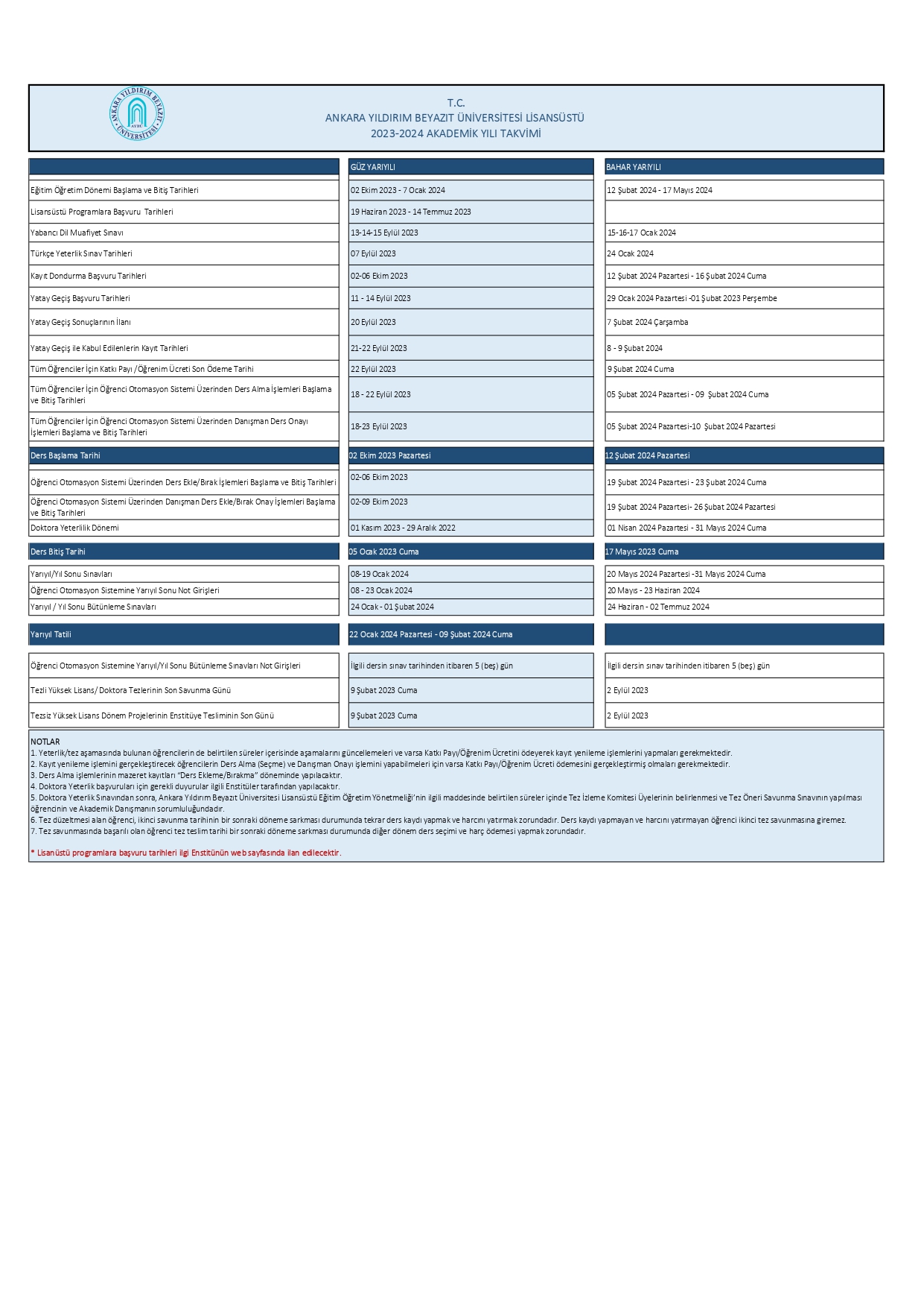 2023-2024 AKADEMİK YILI TAKVİMİ GÜNCELLENMİŞTİR.