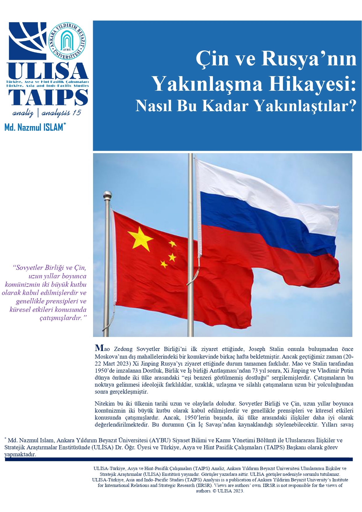 The analysis written by Asst. Prof. Dr. Md. Nazmul ISLAM, Faculty of Political Sciences and Head of Turkiye, Asia and Indo-Pacific Studies, ULİSA at AYBÜ has been published by ULISA-TAIPS: "The Story of China and Russia's Rapprochement: How Did They Come So Close?"