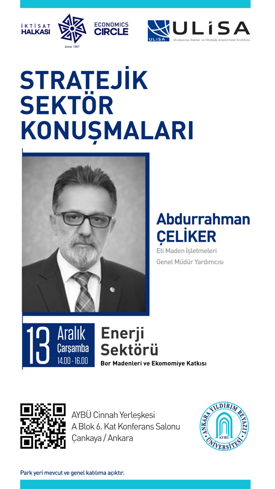 📢 Enstitümüz ve İktisat Halkası Derneği ortaklığında düzenlenen Stratejik Sektör Konuşmalarının “Bor Madenleri ve Ekonomiye Katkısı” başlıklı son semineri, Eti Maden İşletmeleri Genel Müdür Yardımcısı Abdurrahman Çeliker’in katılımıyla gerçekleşecektir.