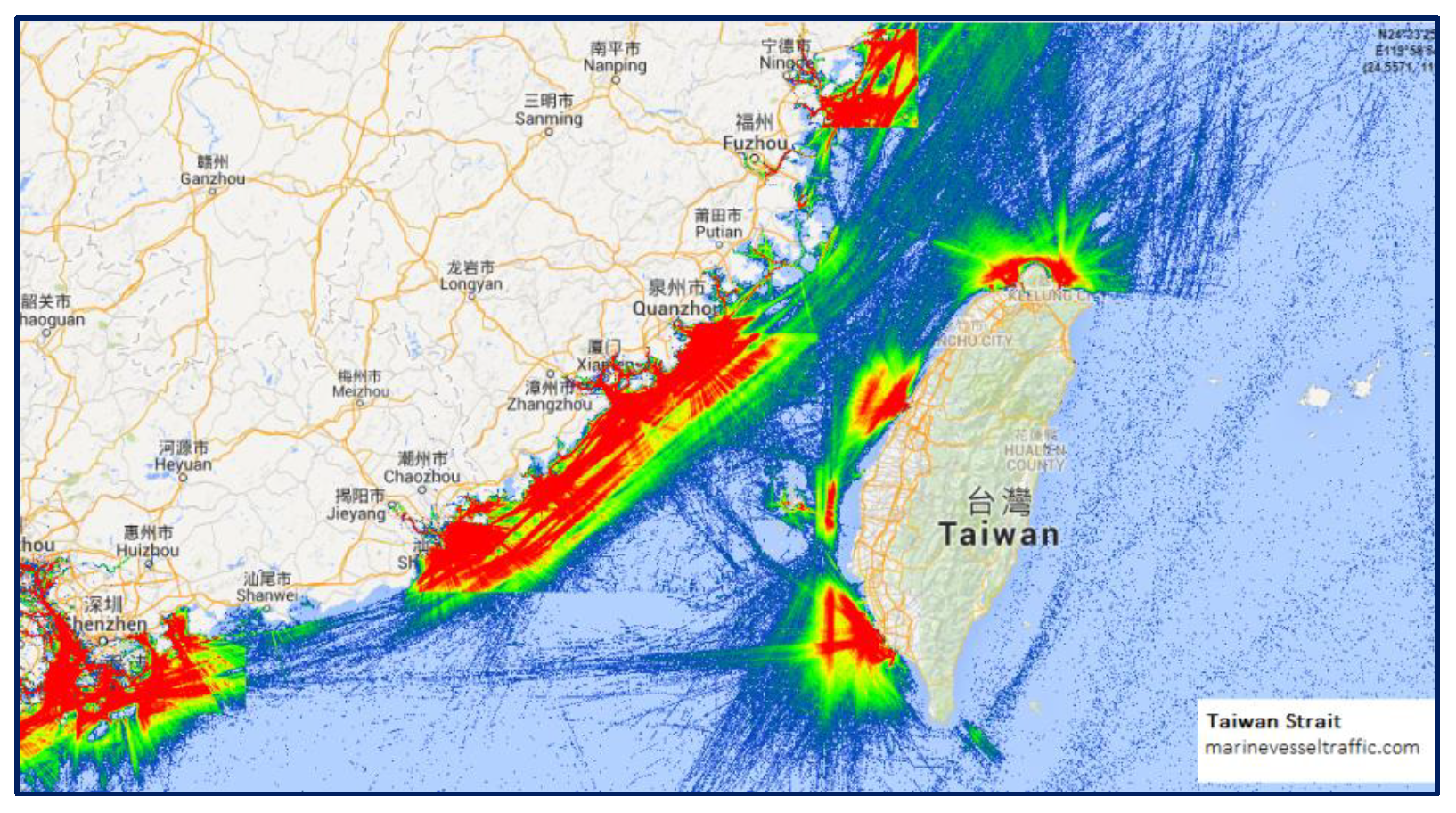 Harita 1: Tayvan Boğazı Gemi Trafiği Yoğunluğu Haritası