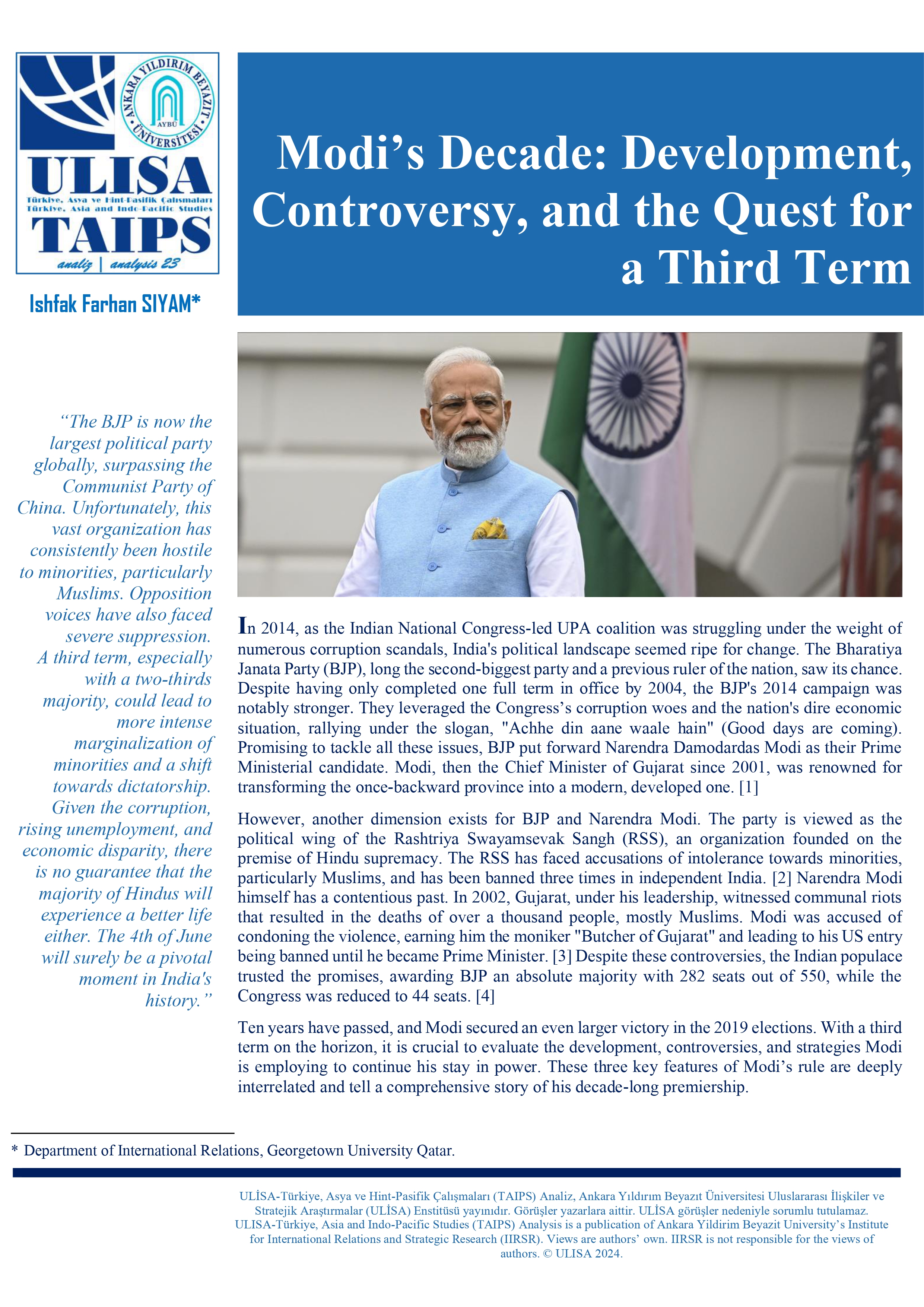 ULİSA-TAIPS ANALİZ 23: Modi’s Decade: Development, Controversy, and the Quest for a Third Term