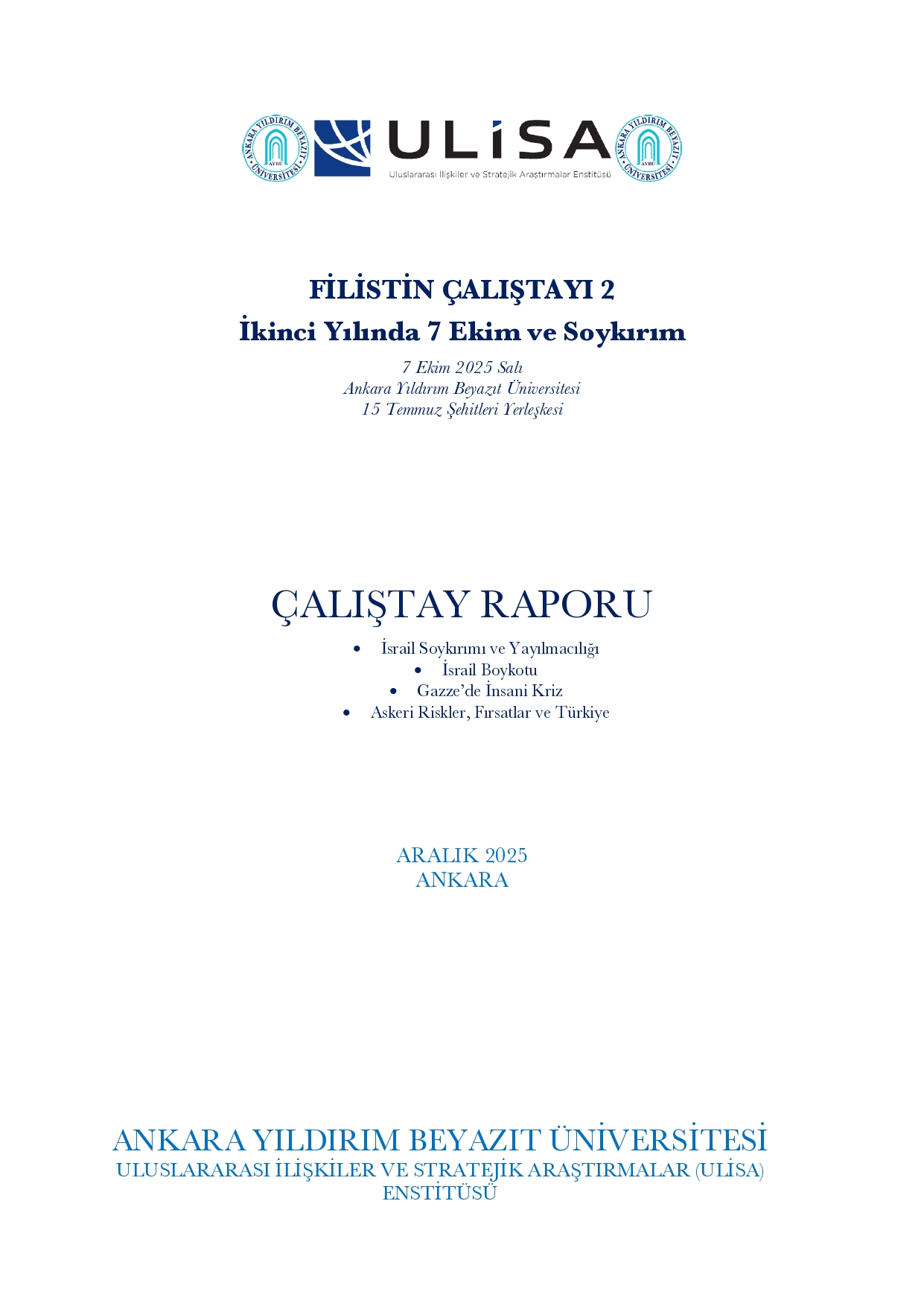 "ULİSA Filistin Çalıştayı 2: İkinci Yılında 7 Ekim ve Soykırım" Çalıştay Raporu Yayımlanmıştır