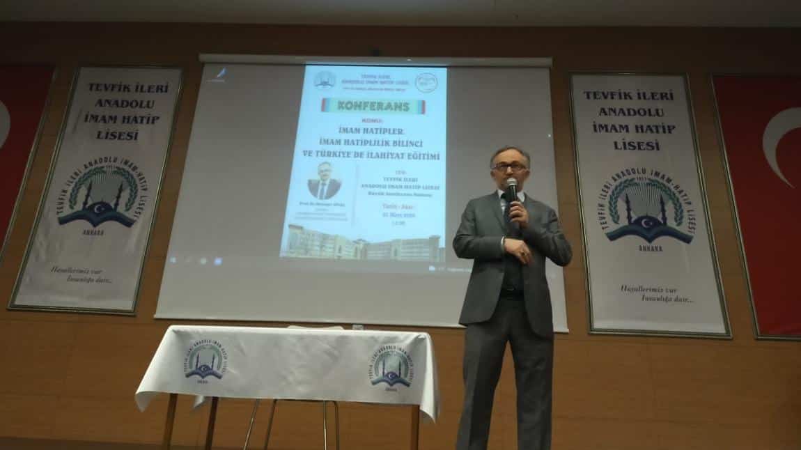 Fakültemiz Dekanı Prof. Dr. Mehmet ÜNAL Tevfik İleri Anadolu İmam Hatip Lisesi öğrencileriyle bir araya gelerek, "İMAM HATİPLER, İMAM HATİPLİLİK BİLİNCİ VE TÜRKİYE'DE İLAHİYAT EĞİTİMİ" konulu bir konferans verdiler.